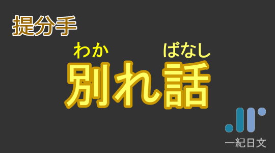 單字 【這字日文怎麼說】提分手 2023/10/21 日文單字 「別(わか)れ話(ばなし)」這字, 是由「別(わか)れる」(分開、分離), 加上「話(はなし)」(話、話題)而成。 談分開的事, 不就是提分手了嗎?