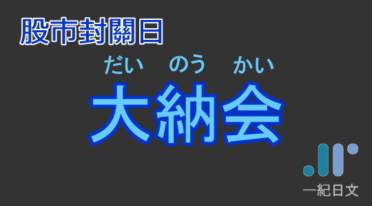 單字 【這字日文怎麼說】股市封關日 2025/01/07 日文單字 「大納会(だいのうかい)」這字, 指該年股市最後的那一個交易日, 也就是封關日。 附帶一提, 股市開盤日則是「大発会(だいはっかい)」。